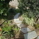 Gästerna kan också njuta av utsikten över trädgården. I badrummet finns även en extra toalett, ett badkar och en dusch. Hårtorkar och toalettartiklar ingår för extra komfort.